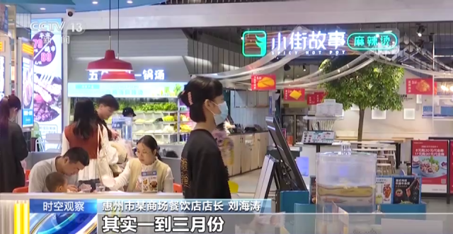 广东惠州市某商场餐饮店店长 刘海涛:看了一下公司的报表,其实一到三月份,营业还是相当不错的,还挺满意的。其实已经超出预期了,后期肯定会更好。