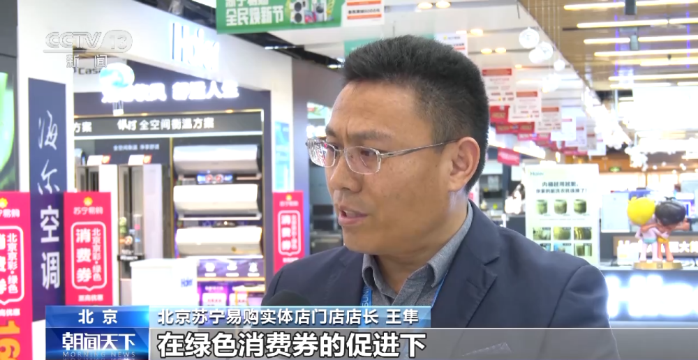 北京苏宁易购实体店门店店长 王隼:在绿色消费券的促进下,我们整个绿色节能家电的销售占比有望从65%提升到80%左右。