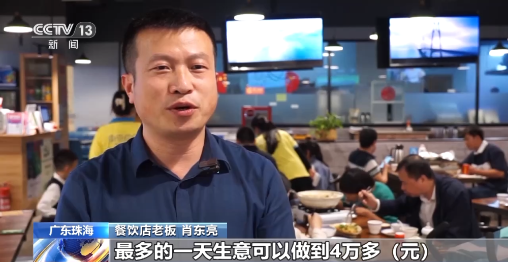 珠海餐饮店老板 肖东亮:订单量大概比平时增长了三倍多。最多的一天营业额可以做到4万多元,生意好了,我们信心更足了,希望能够开更多的店,服务更多的顾客。