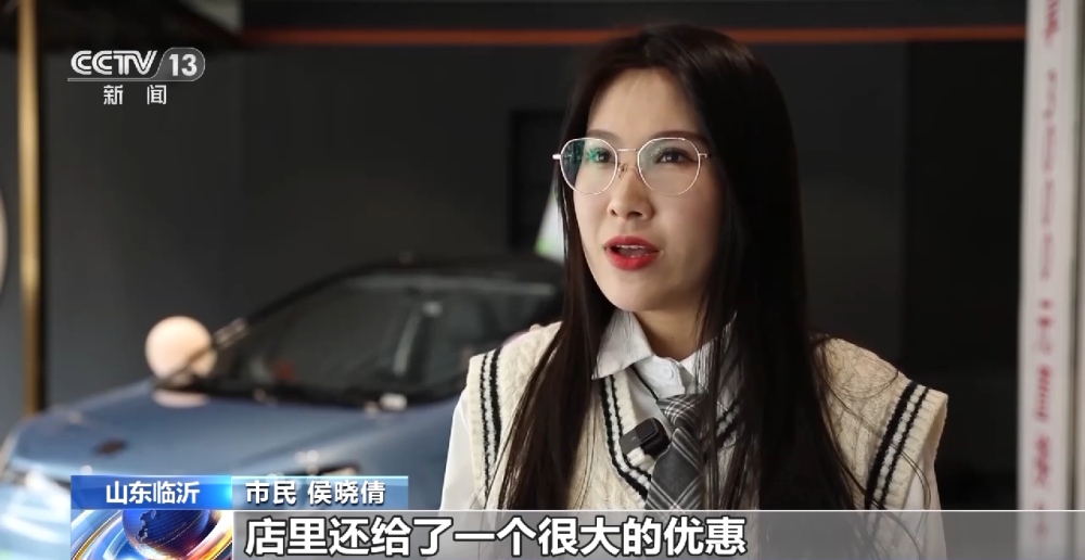 山东临沂市民 侯晓倩:店里还给了一个5000多块钱的优惠,加上政府给的一个补贴3000块钱,加上一些礼品赠送,本来就不到8万块钱的一辆车,现在就给省了1万块钱。