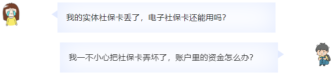 实体卡正常时,电子社保卡服务均可使用;实体卡临时挂失、挂失时,电子社保卡服务经本人授权可使用;实体卡注销后,电子社保卡中与个人业务相关的服务不可用。
