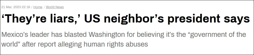 (观察者网讯)“他们是骗子,自认为是世界政府。”当地时间3月21日,墨西哥总统洛佩斯在记者会上愤怒地回应了美国有关墨西哥人权的报告。值得一提的是,他是在与美国总统气候问题特使克里会晤前夕发表上述言论的。