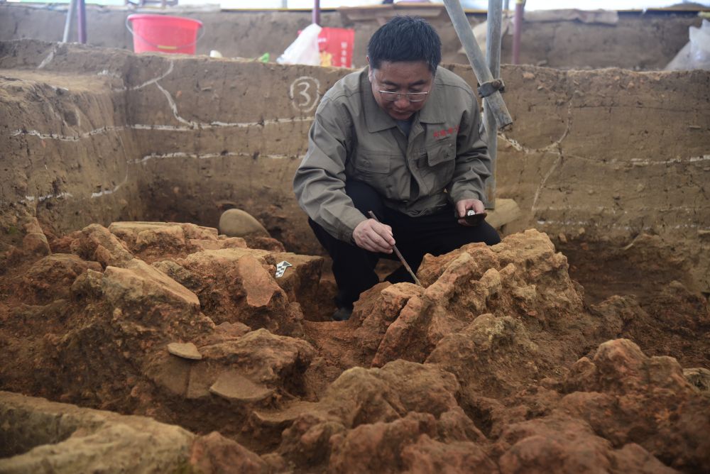 2021年,马俊才在南阳黄山遗址考古发掘现场。