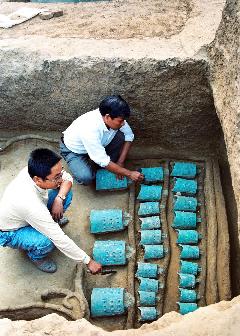 新探方开始刨土的那个下午,一位民工的耙子刚落下就传来“咣当”声。“是金属碰撞声!”马俊才心想,“有了!”