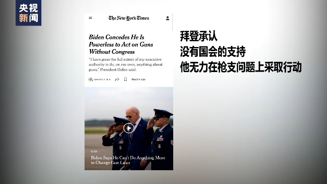 《纽约时报》评论称,拜登这一表态“非常直率地承认”他无力在没有国会的支持下应对美国的枪支暴力,基本上是在美国社会当前面临的最棘手之一的问题面前“举手”投降。