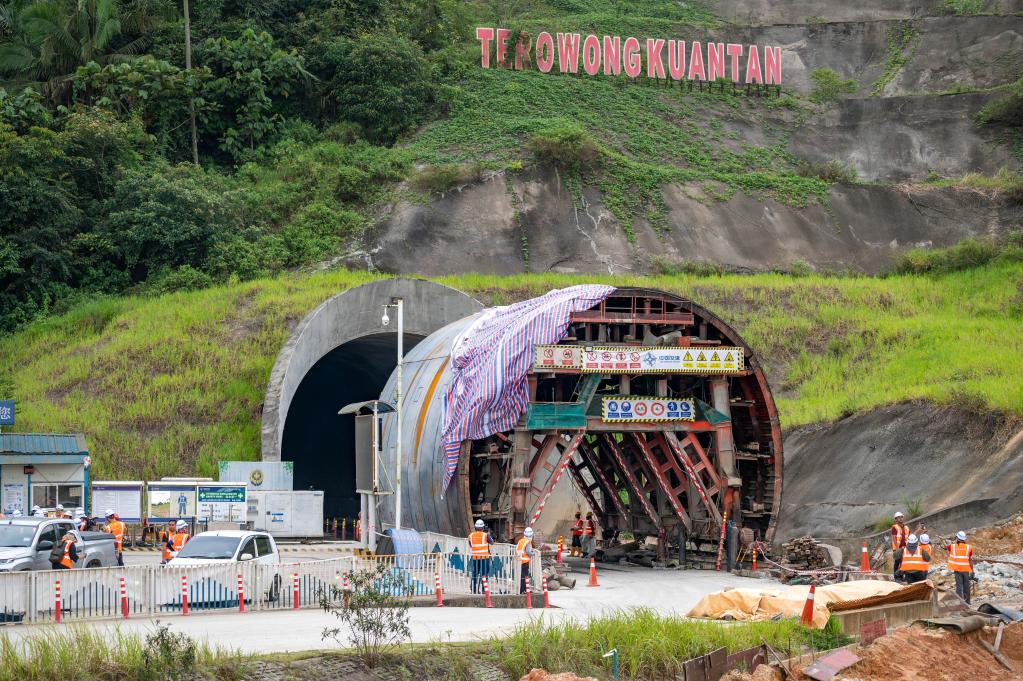 这是3月6日在马来西亚彭亨州拍摄的马来西亚东海岸铁路(马东铁)关丹隧道施工现场。