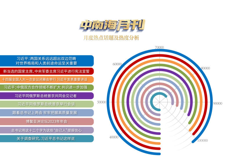 时代之变深刻而宏阔,国际时局汹涌而复杂。央视网“智闻”系统提取分析2023年3月全网时政新闻热点发现,习近平主席的友谊、合作、和平之旅备受舆论关注,印证了大国外交的积极与主动。