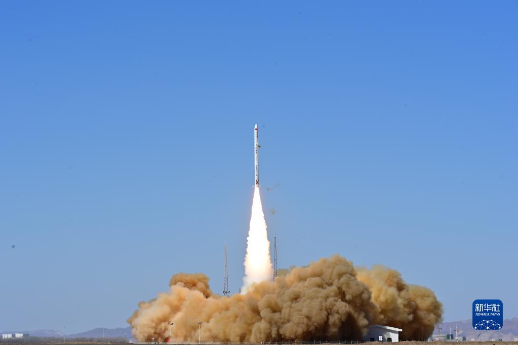 4月7日12时0分,双曲线一号固体商业运载火箭在我国酒泉卫星发射中心成功发射升空,火箭按照预定程序安全顺利完成飞行,发射任务获得圆满成功。新华社发(汪江波 摄)