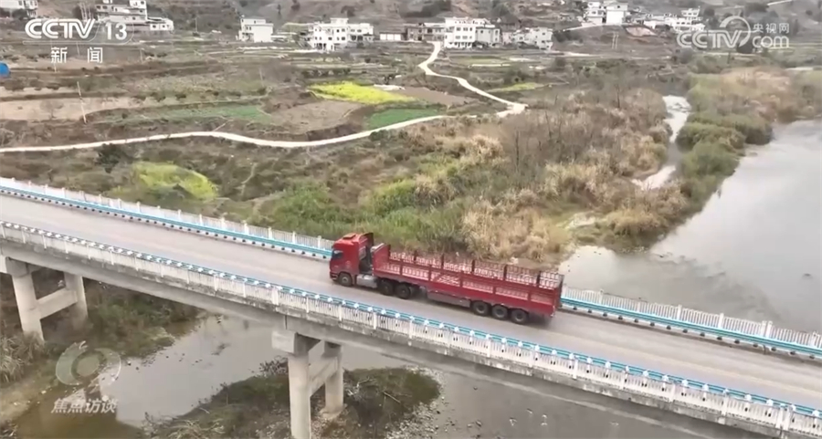 货车驶出物流园,很快就上了国家级高速公路——银百高速。一路上,货车经过了大小30多座桥梁。这些桥梁和高速公路的建设大大缩短了运输里程,降低了物流成本。而下高速以后,无论是县道还是村里的道路,都已经全部实现硬化,路面平整。几个小时后,邓永福就把瓷砖完好无损地送到了客户家门口。