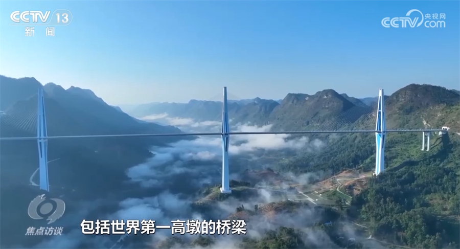 贵州省交通运输厅副厅长董亮:“在全世界很难找到像贵州这样,这么多桥梁集聚的地区。我们在山区桥梁的建设上面,开创了很多世界第一,也不断刷新世界桥梁建设新纪录,包括世界第一高桥、世界第一高墩桥梁、世界第一跨径连续钢构桥梁等。”