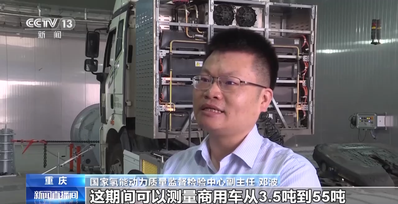 国家氢能动力质量监督检验中心副主任 邓波:这期间可以测量商用车从3.5吨到55吨商用车的氢气排放,氢气的耗用量,包括可以模拟零下45度到60度,在里面的低温启动的情况。