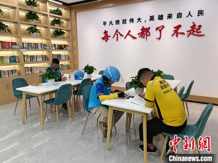 “小哥驿站”内,“小哥”们正在阅读书籍 。 左雨晴 摄