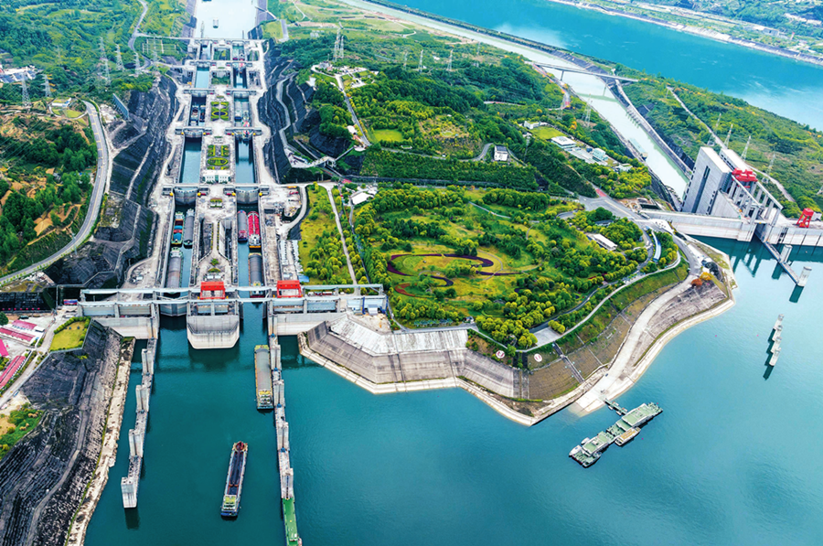 船舶有序通过三峡双线五级船闸(2023年4月24日摄) 郑家裕摄/本刊