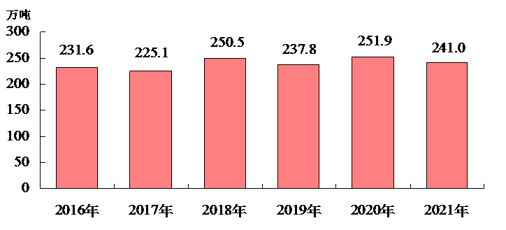 我们再看看下图所反映数据:从2016年到2021年这六年间洛阳粮食产量几乎就是在原地踏步。