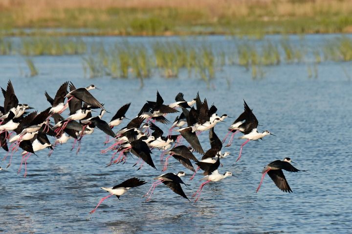 这是在雄安新区白洋淀拍摄的鸟群(2022年4月15日摄)。新华社发(周龙山 摄)
