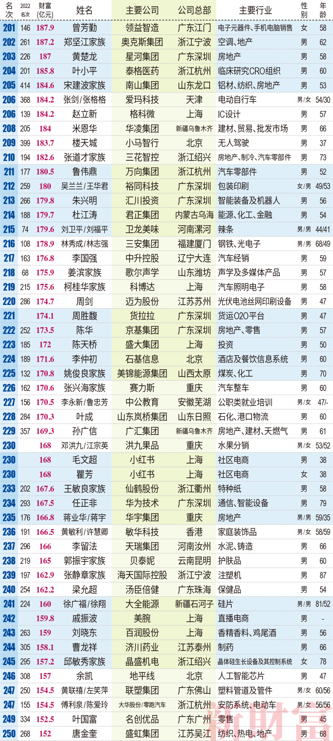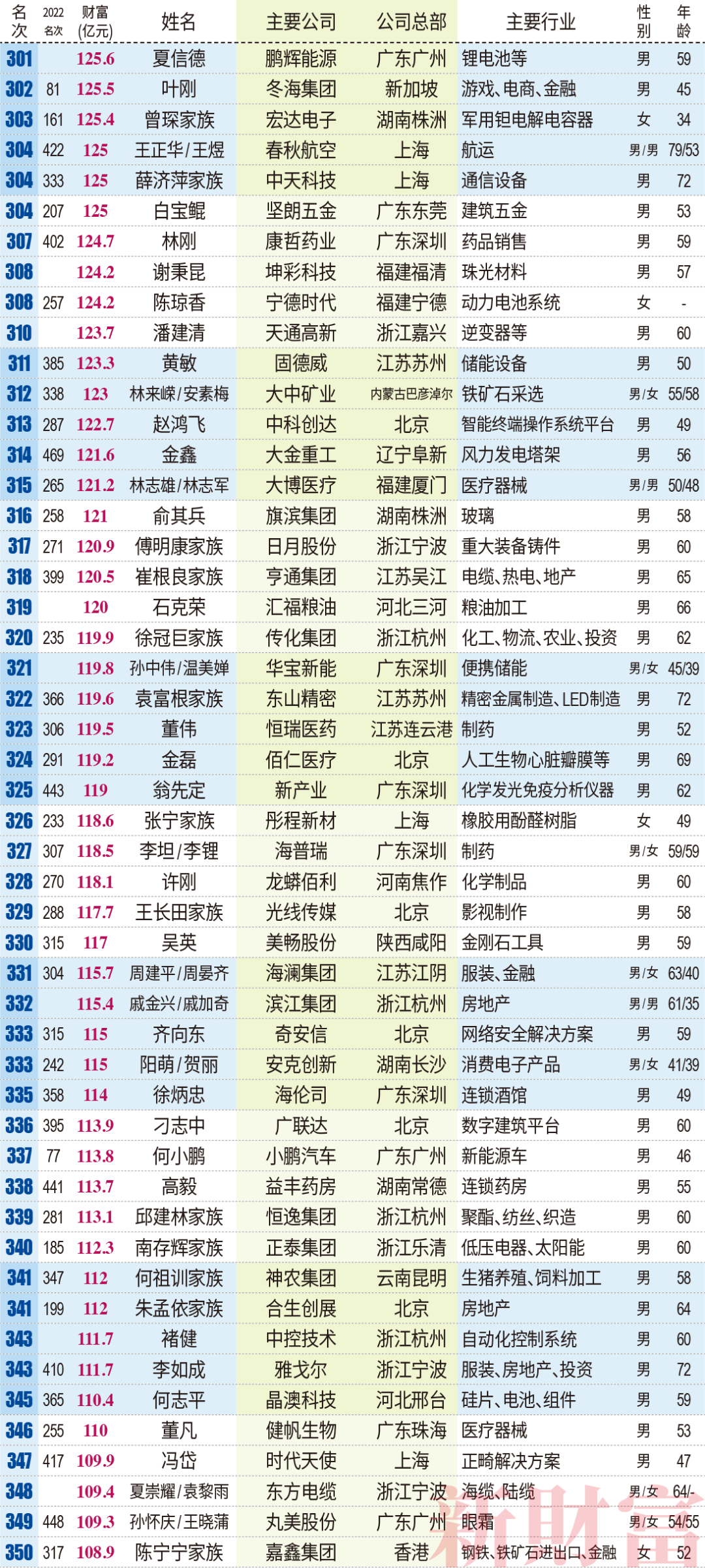 2020~2023年,财富涨幅超过2倍的富人达到了25名,其中21位来自动力电池、新能源车等先进制造业,仅有4位来自金融、互联网等条线。工信部数据显示,2022年,我国制造业增加值达到33.5万亿元,占全球的比重近30%。今年上榜的先进制造业富人数量达到210位,财富占比达到40%。