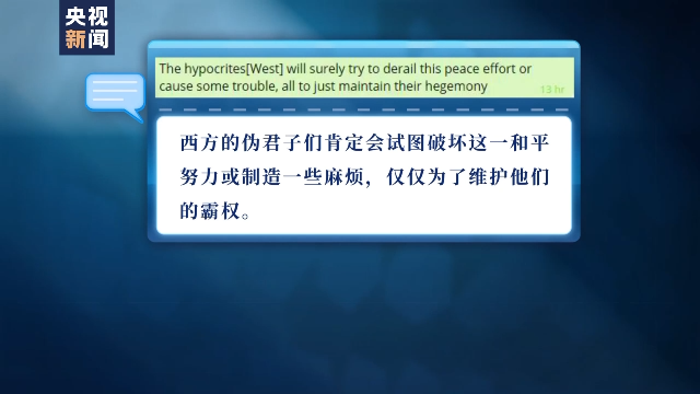 “西方的伪君子们肯定会试图破坏这一和平努力或制造一些麻烦,仅仅为了维护他们的霸权。”