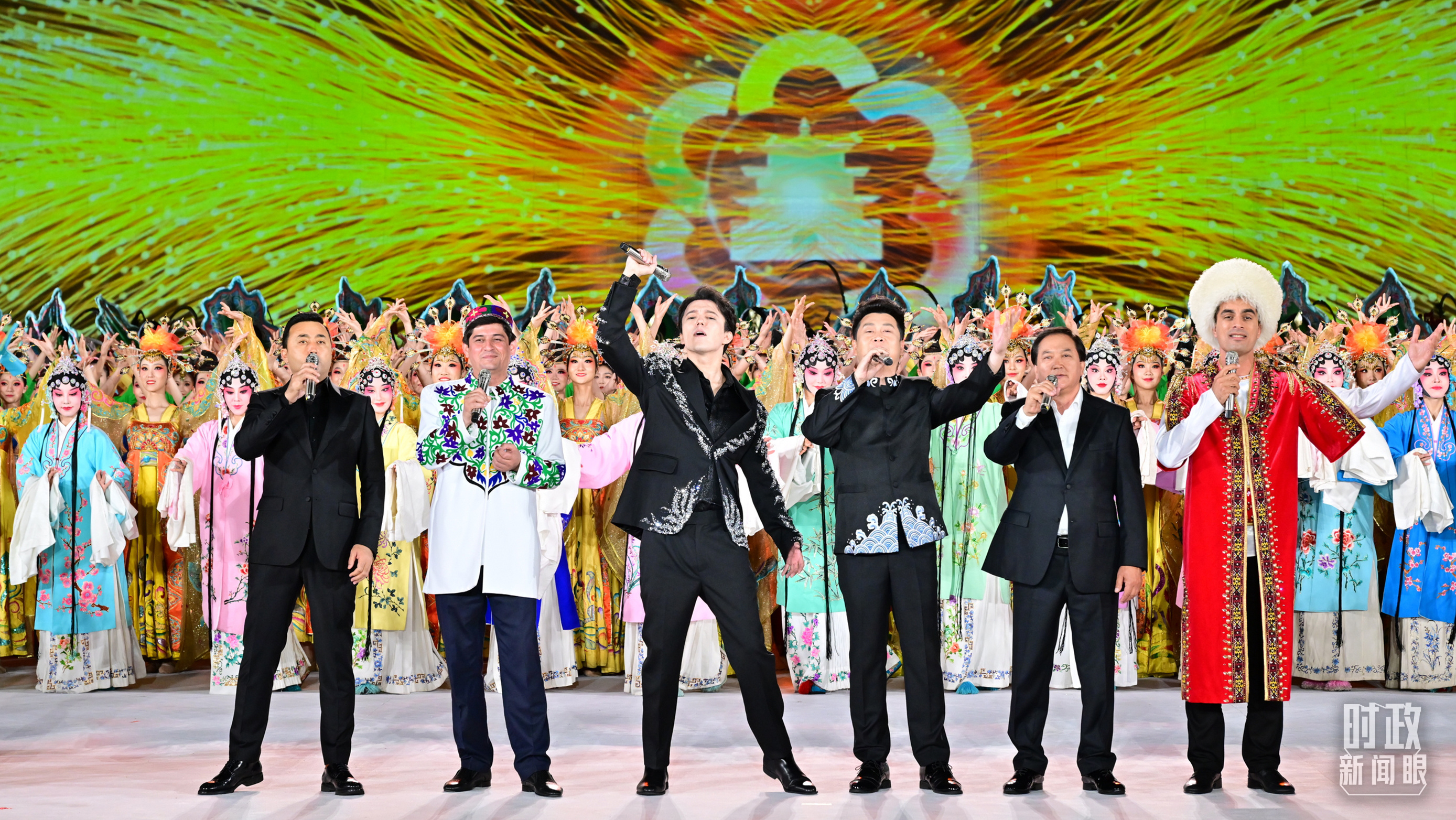 △来自中国和中亚五国的歌手联袂演唱《美美与共》。(总台记者孙楠拍摄)