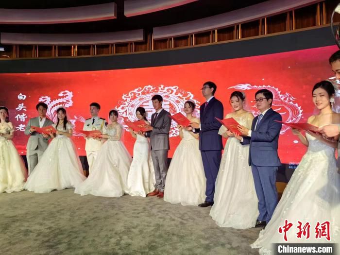 当天,“perfect牵手不一young的幸福”2023年结婚登记集体颁证仪式在上海杨浦滨江举行。这些新人中有知名高校的教师,有军医,有高新技术企业人才,还有律师等。在徐徐江风吹拂下,优雅琴声中,他们十指相扣,步入婚礼现场,时而彼此对视,眼中是满满的爱意。