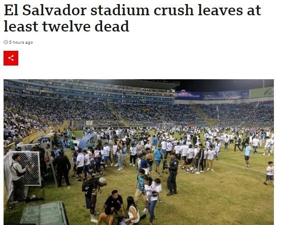 萨尔瓦多总统布克尔表示,该踩踏事故“史无前例”,警方将对发生的事情进行“详尽调查”。他还称,“无论罪魁祸首是谁,他们都不会逍遥法外。”