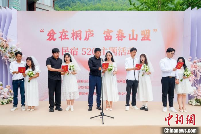 中新网杭州5月21日电 (王题题)在乡村民宿也能领取结婚证?5月20日,首场“爱在桐庐 富春山盟”民宿520主题活动在浙江桐庐横村镇白云村草塗民宿举行。