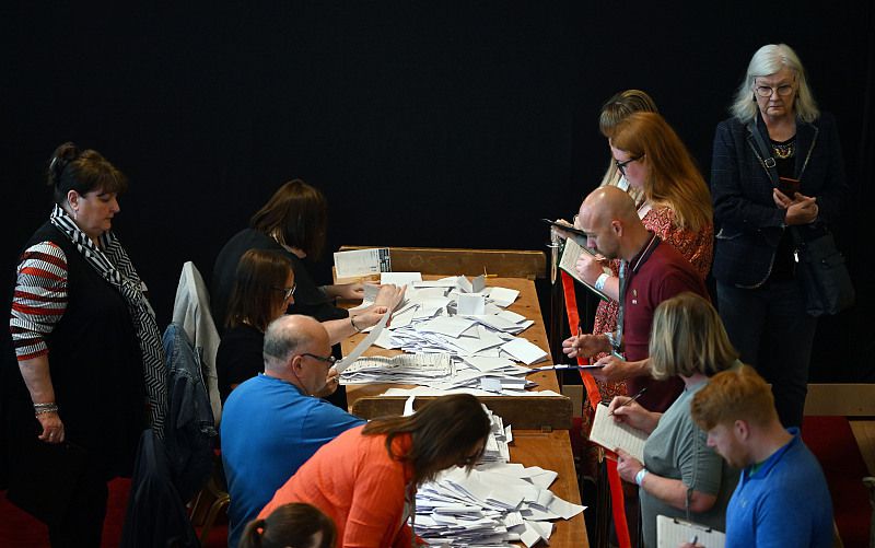 △当地时间19日,工作人员计票。