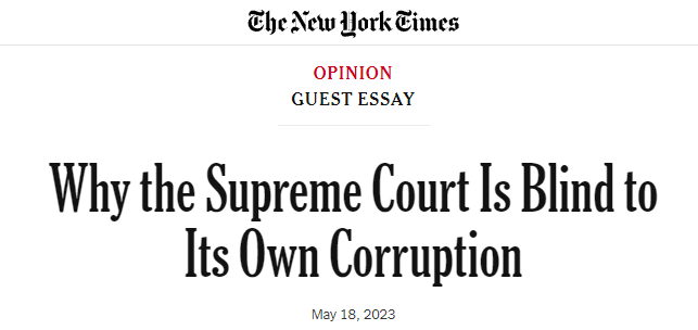 中国日报网5月23日电《纽约时报》近日发表了一篇题为《为何美国最高法院对自己的腐败视而不见》的文章,作者称,围绕美国联邦最高法院大法官克拉伦斯·托马斯(Clarence Thomas)的丑闻进一步削弱了公众对最高法院本已创下历史新低的信心。