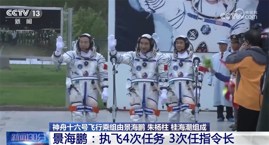 央视网消息:“神十六”乘组是首个由航天驾驶员、航天飞行工程师、载荷专家三种类型航天员组成的飞行乘组,下面我们通过一个短片来了解一下这三名航天员。