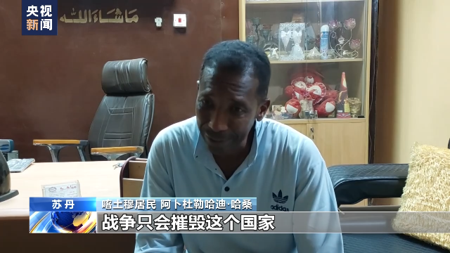 喀土穆居民 阿卜杜勒哈迪·哈桑:我们必须停止战争,无论是对平民还是对领导者来说,战争都不会带来任何益处,战争只会摧毁这个国家,破坏基础设施,耗尽财富,而这些财富本来是用来建设国家,让国家富强起来的。