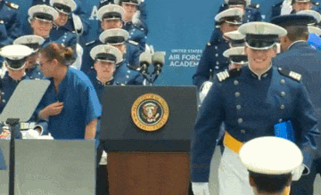 包括空军学院官员和两名特勤局特工在内的人群也赶忙上前,抓住拜登的手臂,帮助他站起来。