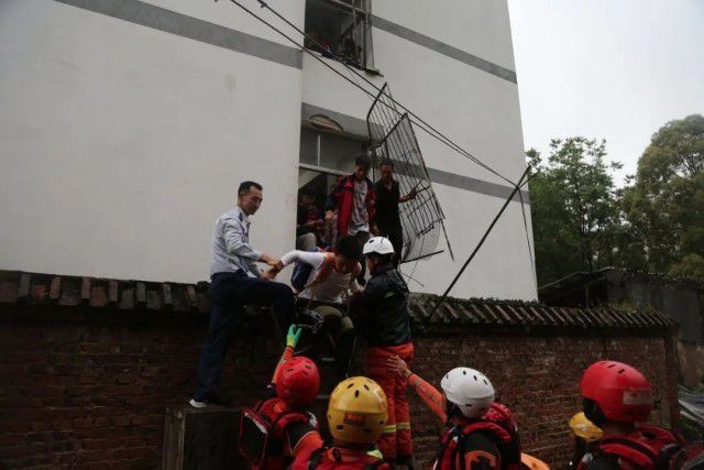 救援人员将学校宿舍二楼后窗“破开”后,利用木梯搭起一座“安全桥”,被困学生通过“安全桥”翻过围墙,并转移至两公里外的安全区域。经过一个半小时时间,被困的356名学生全部安全转移,现场无一人受伤或被困。