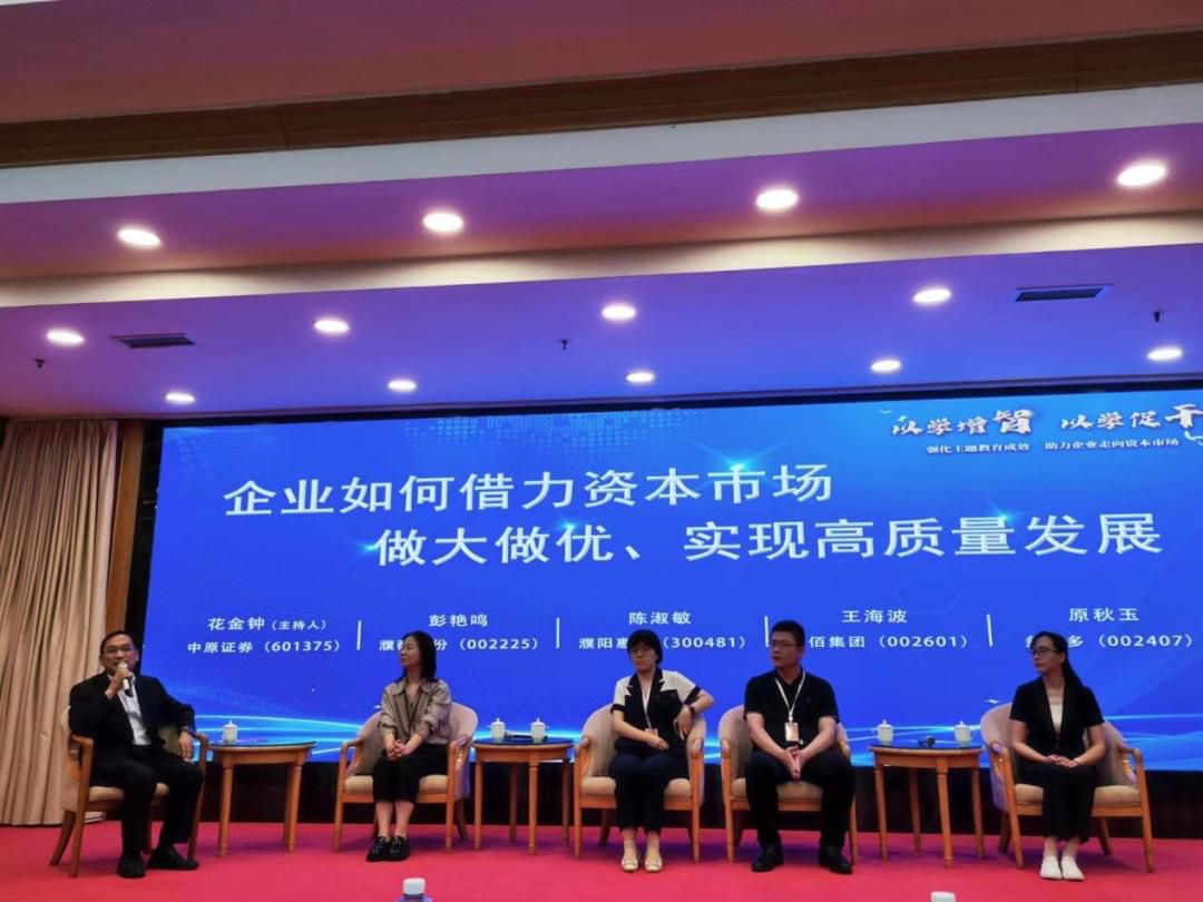 活动还设置主题发言、圆桌对话环节。围绕企业上市必要性、上市建议等方面,濮耐股份、濮阳惠成、龙佰集团、多氟多证券部相关负责人进行分享。