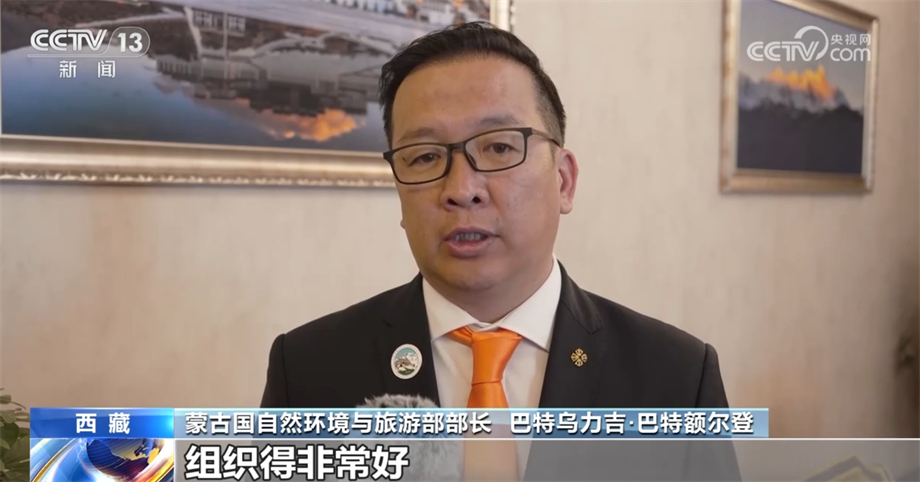蒙古国自然环境与旅游部部长 巴特乌力吉·巴特额尔登:我是第一次来西藏,(本届中国西藏旅游文化国际博览会)组织得非常好,不仅是旅游,也谈到了自然环境问题,受到很多启发。