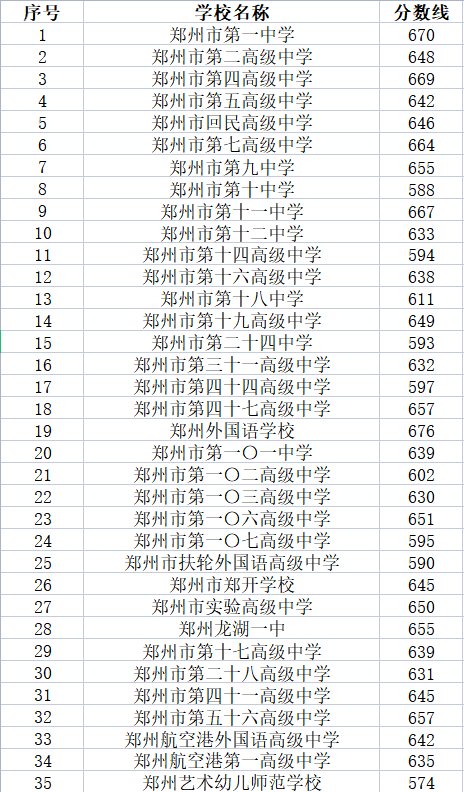 2023年郑州市区公办普通高中录取分数线出炉 郑州外国语学校676