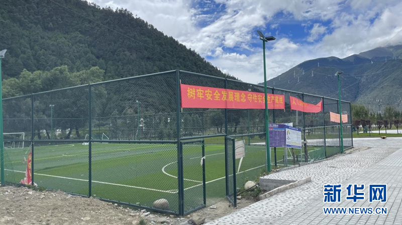 图为才召村新修的五人制足球场,供村里的孩子们踢足球。新华网 陈颖 摄
