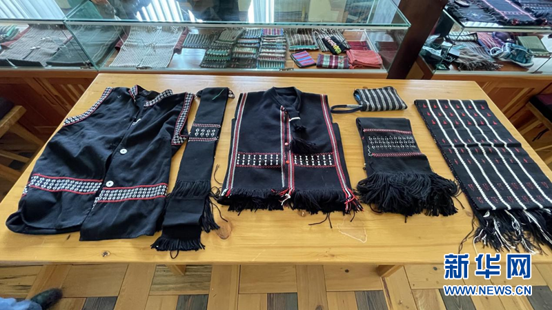 图为工坊内已经制作好的成品珞巴族传统服饰。新华网 陈颖 摄