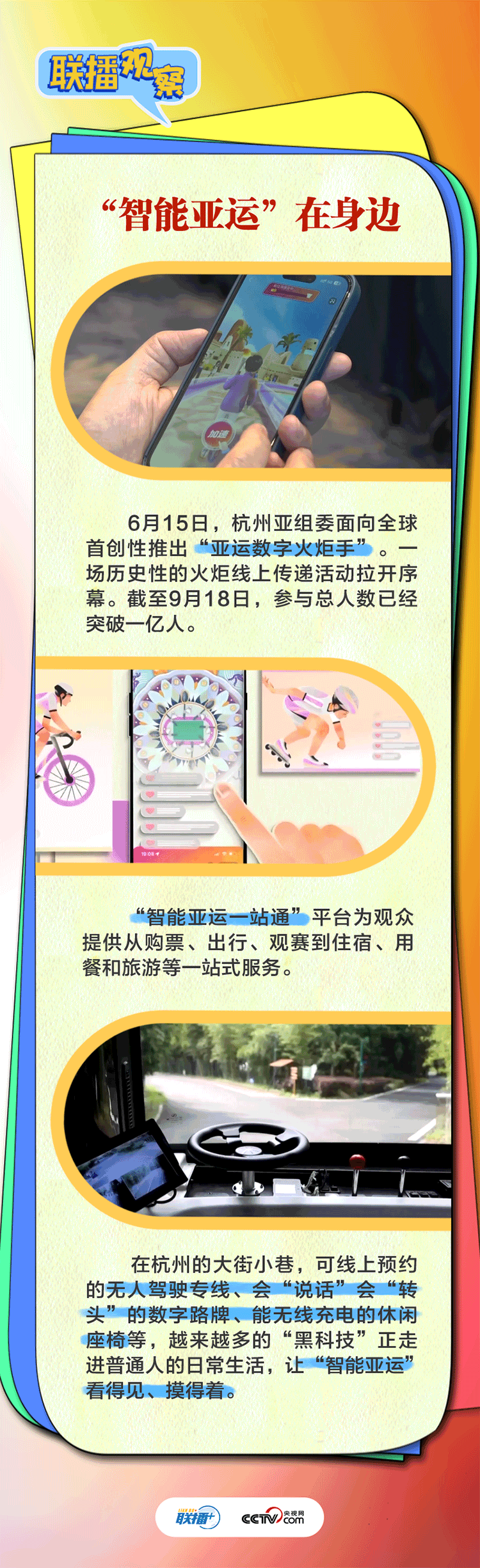 智涌钱塘,奔腾不息。当科技与体育惊艳相遇,作为党的二十大胜利召开之后我国举办的规模最大、水平最高的国际综合性体育赛事,杭州亚运会将在之江大地绽放怎样的智能魅力?央视网《联播观察》邀您一起探究。