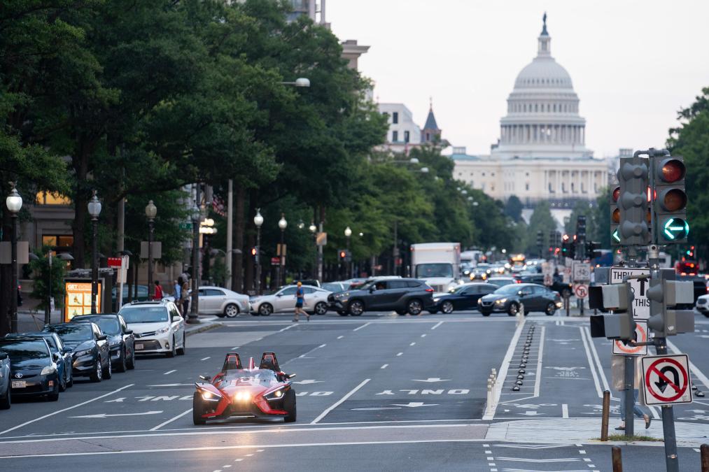9月13日,车辆从美国首都华盛顿国会附近驶过。(新华社记者刘杰摄)