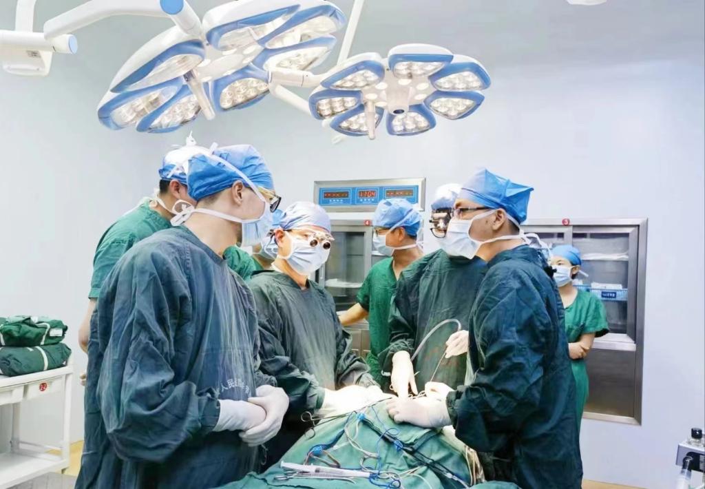 浙江省人民医院毕节医院的医师团队正在为患者李老伯进行手术。(王磊波 摄 新华社发)