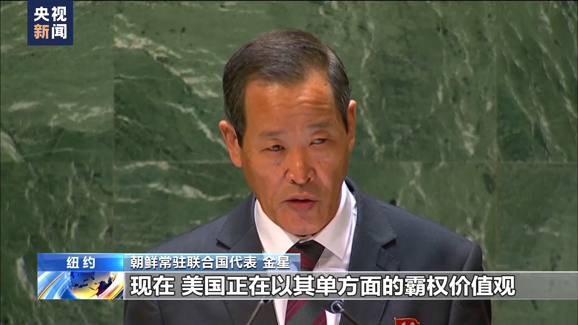 朝鲜常驻联合国代表 金星:现在,美国正在以其单方面的霸权价值观武断地评判其他国家,将阵营间的对抗强加给别国,在国家之间制造深刻的分裂和冲突。美国以巩固同盟为借口,在全球范围内复兴和扩大北约等具有侵略性的军事集团,进行前所未有的政治军事勾结,世界正面临二战后最严重的安全危机。