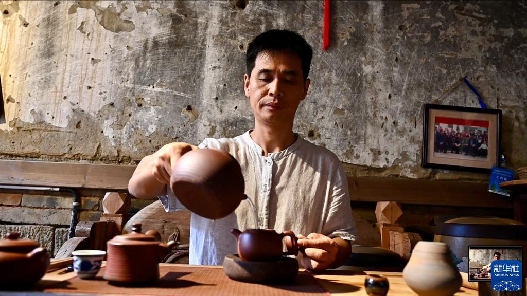 9月5日,在福建武夷山下梅村,武夷山团茶制作技艺传承人邹应文冲泡武夷岩茶。新华社记者 姜克红 摄