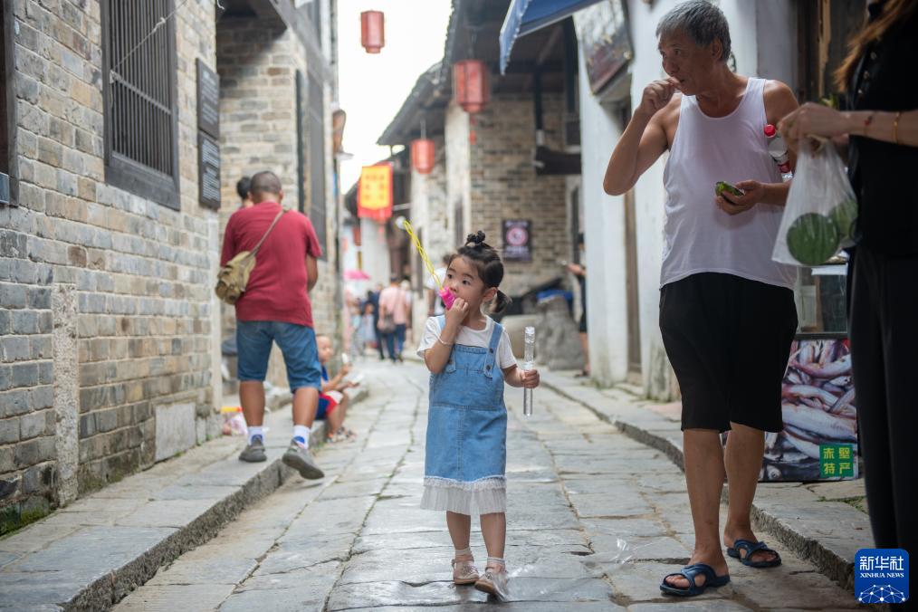 9月9日,游客在湖北赤壁羊楼洞明清石板街参观游览。新华社发(杜子璇摄)