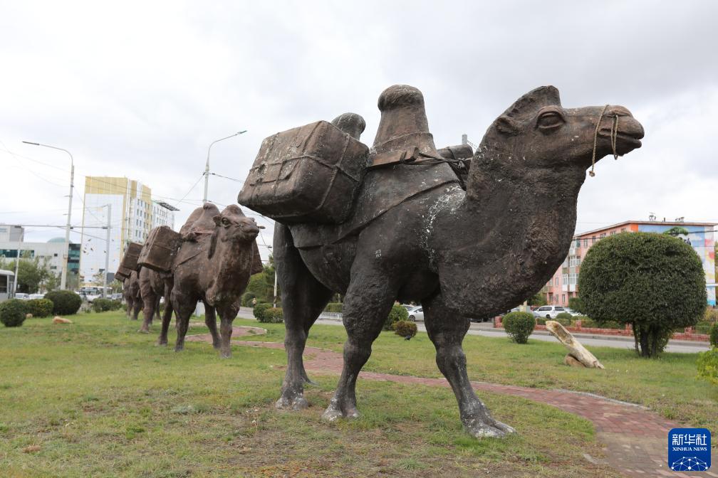 这是9月25日在蒙古国首都乌兰巴托拍摄的市区街心公园内的驼队雕塑群。新华社记者 阿斯钢 摄