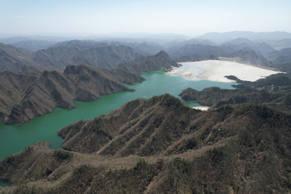 经过生态治理的渭南市华州区金堆镇栗西沟尾矿库(2022年4月7日摄,无人机照片)。新华社记者 邵瑞 摄