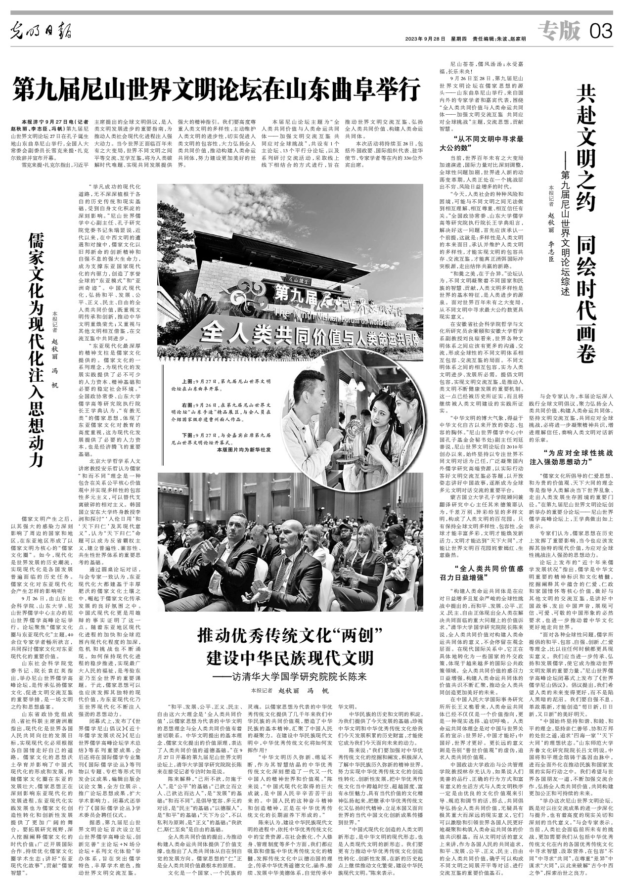 9月26日至28日,第九届尼山世界文明论坛在儒家思想的源头——山东曲阜尼山举行,来自国内外的专家学者和嘉宾代表,围绕“全人类共同价值与人类命运共同体——加强文明交流互鉴共同应对全球挑战”主题,交流思想,贡献智慧。