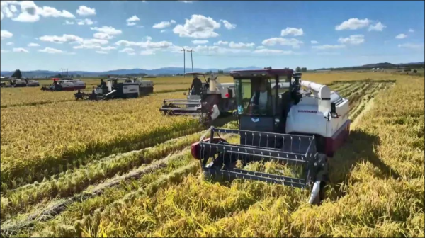 “现在吉林省各种粮食作物已经进入完熟期,目前看今年霜期比较晚,收获期较常年略晚,为粮食后期产量的提升提供了重要的气候条件保障。另外,今年吉林省中西部地区在作物长势关键时期,雨水量非常充沛,为粮食的灌浆和籽粒形成提供了非常有利的条件,也为粮食丰收奠定了很好的基础。” 吉林省农业技术推广总站粮食作物技术科科长胡博介绍说。