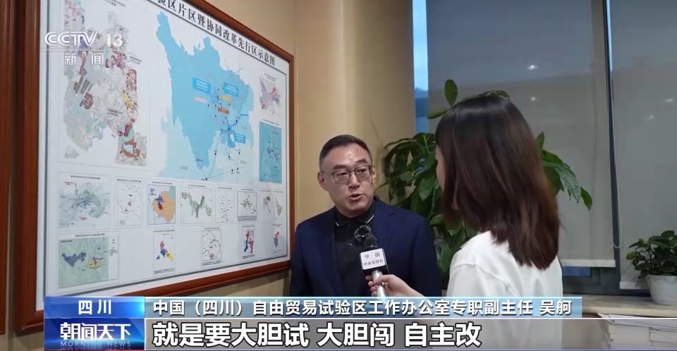 中国(四川)自由贸易试验区工作办公室专职副主任吴舸:自贸区创新就是要大胆试大胆闯自主改,我们对标国际的经贸规则和国内先进地区,逐渐把四川建设成为向西开放的战略高地和参与国际竞争的新基地,使我们的高质量发展取得更大的成就。