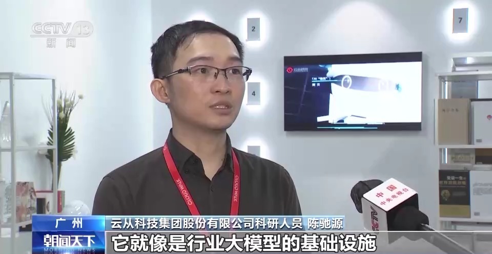 云从科技有限公司工程师陈驰源:它就像是行业大模型的基础设施,通过实时学习并同步反馈结果,可以根据不同行业,对应开发出数字教师、数字金融分析师等各个行业的人工智能应用。