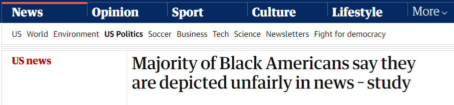 英国《卫报》网站在报道中称,27日发布的这项全面的调查显示,大多数非裔美国人认为,将更多的非裔作为消息来源纳入新闻报道,会让他们觉得报道更公平。