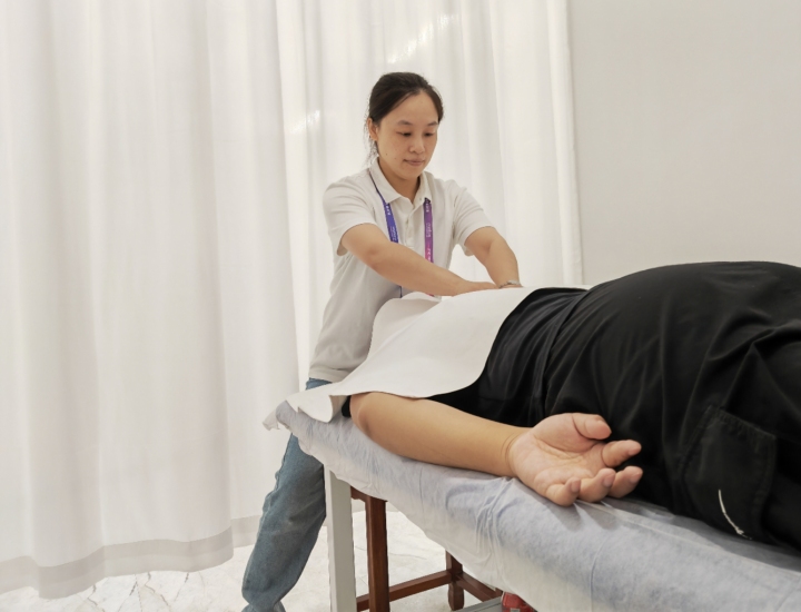 陈静怡说,各国媒体人主要都是颈肩腰痛,偶尔有一些膝关节和腕关节的劳损问题。而经验丰富的推拿医生们,能快速找准酸胀点,用专业精湛的手法推揉,缓解肌肉酸胀效果立竿见影,外国记者竖起大拇指夸赞。